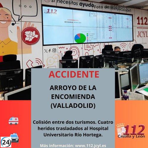Accidente en Arroyo de la Encomienda deja cuatro personas heridas en colisión entre dos coches.