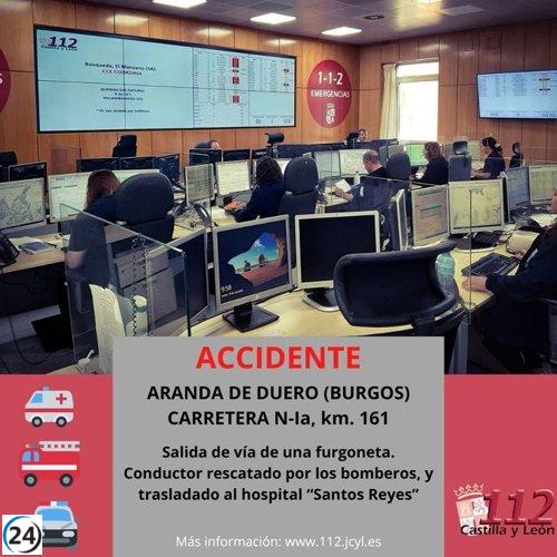 Accidente en la N-I en Aranda deja una persona herida tras salida de una furgoneta de la vía